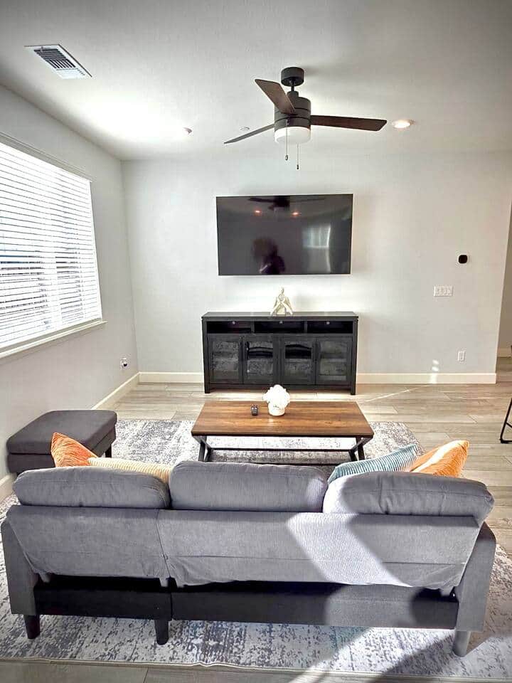 The home’s layout balances private bedrooms with generous communal space, so it’s perfect for families, friends traveling together, or remote workers who need a comfortable place to focus. The covered patio and landscaped backyard invite morning coffee and evening gatherings. Guests have full access to the entire property — living room, sunroom, kitchen, dining area, all three bedrooms, both bathrooms, laundry area, garage parking, and the outdoor space with a beautiful patio offering a privacy at the backyard perfect for morning coffee.