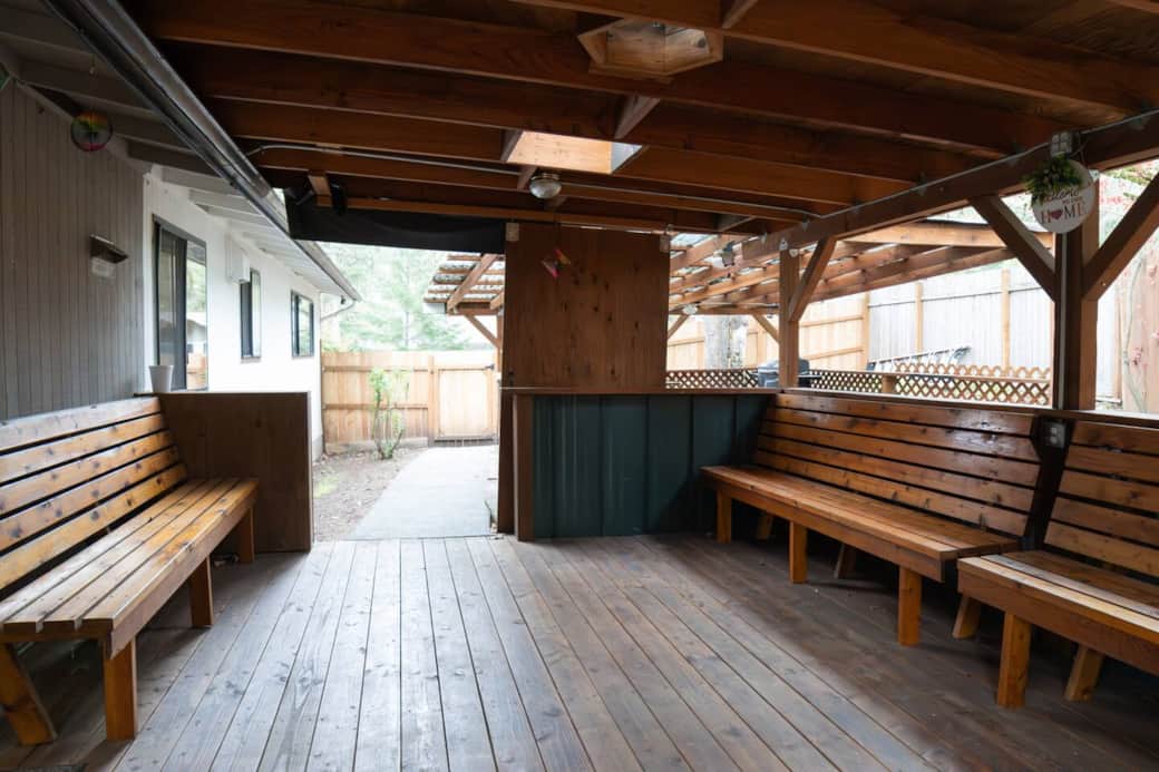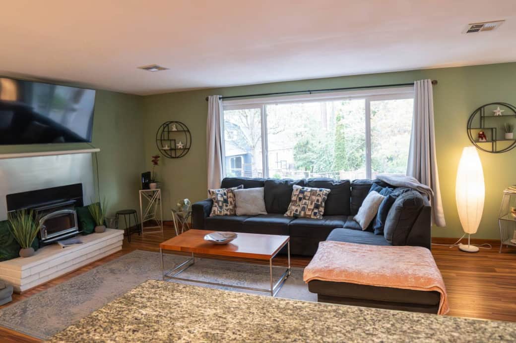 This two-story, split-level home combines private sleeping spaces and communal living well suited to groups who want both together time and personal space. Three queen bedrooms offer comfortable mattresses and storage, and the bunk room (twin over full) is perfect for kids or a small sleeping party. Two full bathrooms are appointed with fresh linens and toiletries to help you travel lighter. Entertainment options include the Smart TV and a separate game room where guests can play board games or unwind after a day exploring Eugene. The kitchen is well-stocked for cooking breakfasts, dinners, or group meals—expect quality stainless-steel appliances, a dishwasher for easy cleanup, and countertop space at the breakfast bar. Practical details: driveway parking fits two vehicles and there’s free street parking for about three more, central laundry access as needed, and clear guidance on the split-level stairs (note: stairs are required to reach the main living and sleeping areas). For safety and property monitoring, we have two exterior, outward-facing security cameras (front entry and backyard) that are motion-activated and record video and sound when triggered.